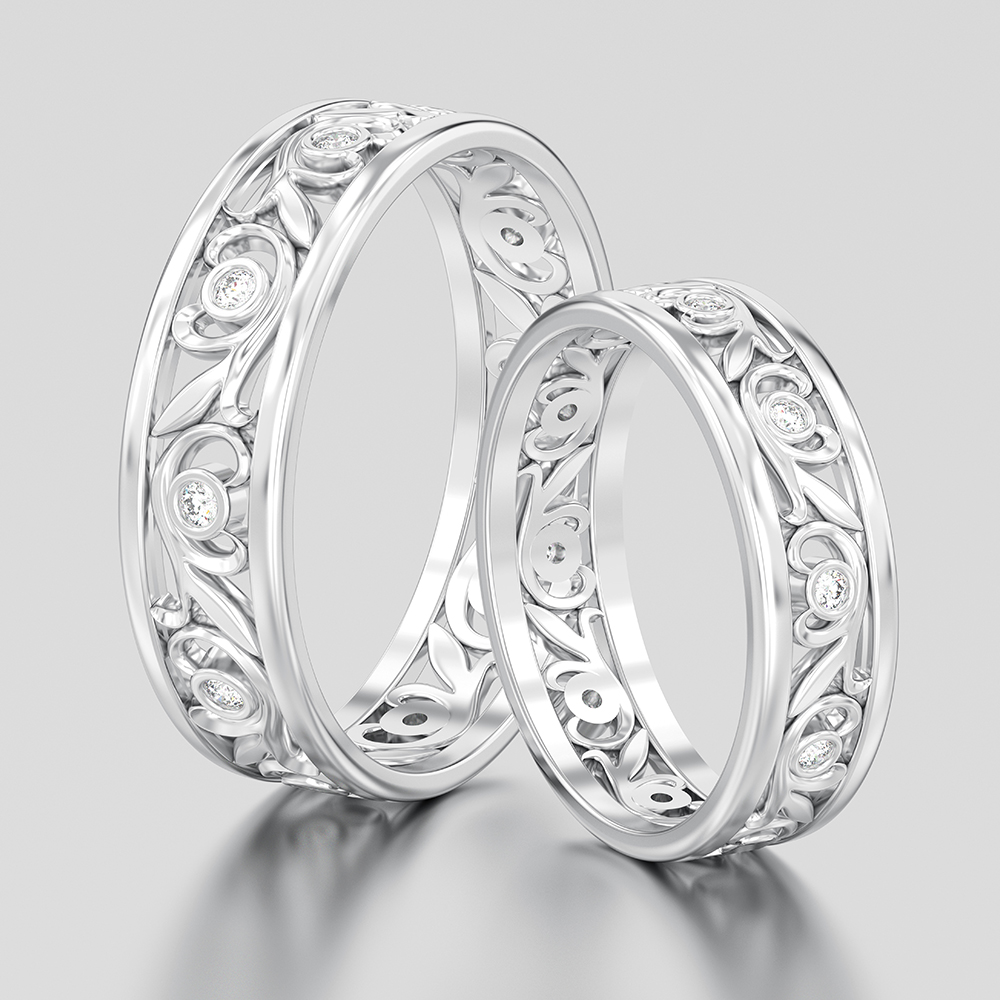 • White Gold: Created by alloying gold with white metals such as palladium or silver, white gold offers a contemporary and sophisticated look. It is often rhodium-plated to enhance its bright, white appearance.